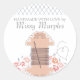 Hübsches Nähen, Nähen oder Sticken "handgefertigt mit Liebe" Aufkleber oder Packungsetikett mit dekorativem Gewinde, Nähnadel, fähigem und wasserfarbenem Hintergrund mit Gitterrahmen.