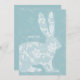 Ein schöner weißer Hasen auf blauem Hintergrund hat ein elegantes Blumendesign auf dem ganzen Bild. Es ist anders, aber so hübsch!