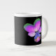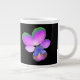 Diese phantastische Tasse zeigt ein Foto einer wilden Pansy-Blume. Das Foto wurde künstlich gefärbt, was zu einer Panik mit leuchtenden rosa lila Blütenblättern mit grünen Spitzen-Blättern und einem tiefblauen Zentrum führt. Der Hintergrund ist schwarz, um die Blume zu heben.