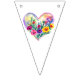 Hübsche Aquarellblumenkranz lila, pink, magenta, weiß und gelb Blume Herzen buntgebend Banner hübsch für Babyduschen, Geburtstag oder Jubiläum Party.