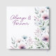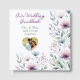 Schönes personalisiertes Hochzeitsguestbook. Eine elegante Aquarellblüte mit violetten Blumen mit schlängelgrünem und staubblauem Blattwerk und Blumendesign. Bearbeiten Sie den Text und laden Sie Ihr eigenes Bild im personalisierenden Bereich hoch.