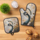 Hübsche Pfauengoldene Weihnachten Ofenhandschuh & Topflappen-Set