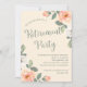 Diese reizende Ruhestandszeit-Party Einladung ist mit einem sanften Pfirsichboden mit subtilen weißen Polka-Punkten und trendigen pfirsichfarbenen und weißen Blume mit vielen grünen Blätter ausgestattet.