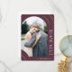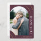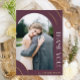 Diese elegante, dunkle Pflaume ein Foto Hochzeit danke Ihnen Karte verfügt über einen schönen goldfarbenen Bogen geometrischen Rahmen und ein Foto. Bitte schauen Sie sich diese trendige Hochzeitskollektion an, um Hochzeitseinladungen zu koordinieren und weitere Chic-Farboptionen zu erhalten.
