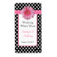 Stilvolle Schwarz-Weiß Polka dot Mini Trauweinetiketten für Sie bereit, um mit Ihren eigenen Informationen zu personalisieren. Ein rosa gestrichener weißer Textbereich in der Mitte ist mit rosa und schwarzem Text versehen, und die Grafik eines rosa Farbband ist mit einem rosa Gerber-Dekor versehen. Ideal für Ihren Hochzeitsempfang oder Ihre Zuhause-Weine.