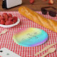 Diese hübsche Regenbogenfarbenplatte ist sehr einfach und farbenfroh. Niedliche Farbtöne für ein LGBTQ-Paar, das als Empfang für eine Gay Pride-Hochzeit mit einem leichten und fröhlichen Thema in diesem Sommer verwendet wird.
