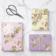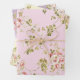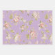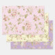 3 Bögen Geschenkpapier mit hübschen alten Rosen auf Ranken in Gelb, Pink und Lila. Perfekt für eine 'Eine kleine Wildblume ist auf dem Weg' oder eine 'Baby in Blüte' Babyparty. Hübsches Blumendesign in sanften Pastellfarben, Gesamtdesign.