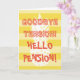Die sonnige Pensionskarte mit für pensionierte Freunde. Niedliche tropische Ananas Frühlingsgrußkarte mit humorvollem Zitat: Auf Wiedersehen Spannung hallo Pension. Spaß Typografie Design mit benutzerdefinierten Nachrichten. Personalisierbarer Text für Männer und Frauen im Ruhestand. Benutzerdefinierte gestreifte Hintergrundfarbe. dh gelb. Machen Sie einen für Chef, Mitarbeiter, Mitarbeiter, Freund, Ehemann, Ehefrau, Vater, Mutter, Großvater, Großmutter, Schwester, Bruder, Familienmitglieder etc. Büro Humor für Männer und Frauen, die kurz davor stehen, aus dem Berufsleben oder aus dem Berufsleben auszuscheiden. Auch in großer Übergröße erhältlich.