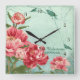 Hübsche Retro Blume Wohngestaltung Chintz Peony n Quadratische Wanduhr