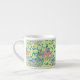 Eine sehr hübsche kleine Espresso-Tasse, mit einem Muster aus tiefrosa, tiefblauen und gelben Primaten, von einem handbemalten Aquarellbild von Judy Adamson. Als Teil der Posh & Painterly 'Primroses' Kollektion kann dieses Muster an jede Tasse angepasst werden.