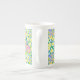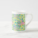 Eine sehr hübsche Kaffee-China-Tasse mit einem Muster aus tiefrosa, tiefblauen und gelben Primaten aus einer handbemalten Aquarellgestaltung von Judy Adamson. Als Teil der Posh & Painterly 'Primroses' Kollektion kann dieses Muster an jede Tasse angepasst werden.