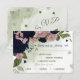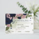 Herrliche, individuell anpassbare botanische Rsvp-Karte mit Speisekarte hübsche rosa und marineblau Blumen mit romantischen grünen Blätter