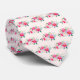 Eine Krawatte mit einem skurrilen Aquarellbild. Ein wunderschönes Blumenarrangement mit hellrosa und pastellrosa Farbtönen, eingebettet in grüne Blätter und Zierschriften.