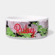 Das Originalgemälde auf dieser sehr hübschen Hundeschüssel ist ein Haufen rosa Fuchsias, die Originalkunst ist ein Aquarellbild. Die weich rosa Blume hängen zwischen ein paar weichen grünen Blätter und sind in einem skizzenhaften Stil mit einem schwarz-feinen Füller gestaltet. Dieses hübsche Blumendesign ist eine willkommene Ergänzung zum Doggies-Dinner.