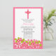 Hübsche Rosa Blume und Kreuz Erste Heilige Kommune Einladung