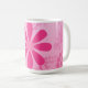 Eine niedliche, girly rosa Tasse mit einem Bild der hellen rosa retro Blumen und wirbelnden Schnüre der Perlen. Vervollkommnen Sie für ein Jugendmädchen, das die Liebezusätze, zum im Rosa hübsch zu sein.