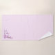 An den Ecken dieses Badehandtuch-Set schmückt ein Zweig hübscher rosafarbener Kirschblüten mit rosa Hintergrund.