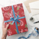 Hübsche Rosa Nelken Blume auf Rot Gemustert Geschenkpapier