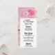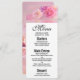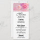 Veranstaltungsmenü mit einem Foto mit einem Strauß rosa Nelken. Set auf einem traumhaften ätherischen Hintergrund.