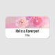 Ein Namensschild mit einem Foto mit einem Strauß rosa Nelken. Set auf einem traumhaften ätherischen Hintergrund.