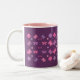 Rosa, weiße und lila Tasse mit einer Sammlung hübschen Cartoonschmetterlingen, -herzen und -Blumen in den Rosa und in den Fliedern. Wenn Sie wollen, um zu ändern, klicken die Art und die Farbe Ihrer Tasse an "besonders anfertigen es" Knopf an. Sie können die Hintergrundfarbe auch ändern und - Lose Farben einfassen, um von zu wählen.