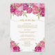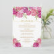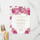 Genießen Sie Ihren Hochzeitstag mit diesem eleganten, blumengeschmückten Menü in hübschen Rosa und lila Farbtönen, einem Blumenstrauß mit Aquarellfarben, grünen Blätter und Goldflecken.