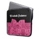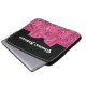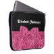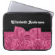 Eine schicke, rosa und schwarze 15 Zoll Laptop-Hülle mit einem femininen und stilvollen Blumenmuster aus der Rose und einem gürlich rosa Band, das in einem niedlichen Bogen befestigt ist. Personalisieren Sie dieses hübsch romantische Design-Mode-Accessoire in rosa Blume, indem Sie Ihren Namen hinzufügen. Flachbild, nicht echtes Band. Original Art Copyright von ©Tracie Kaska.