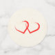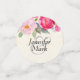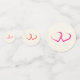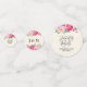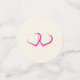Personalisierte Hochzeitskonfetti zum Sprinkeln auf einem Tisch. Mit einer rosa Rose und Blume aus Pony. Fröhlich und sommerlich. Hintergrund ist ein Pergament-Bild für Imitate. Die Hinterseiten haben zwei Paar miteinander verbundene Herzen in Rosa und Rot.
