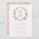 Diese wunderschöne Babydusche oder Babysprinkle-Einladung enthält einen Kranz von hübschen rosa Aquarellfarben-Rose mit grünen Blätter und Imitaten Rose goldenen Akzenten, und Imitate goldenen Drehbuch, das "Oh, Mädchen" in der Mitte sagt. Die Rückseite der Karte ist eine weiche rosa Farbe mit passenden Blumensträußen in den Ecken.