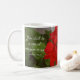Diese wunderschöne Tasse zeichnet sich durch ein Foto eines roten Geranens aus, zusammen mit einem inspirierenden Bibelvers über das Besondere Gottes.