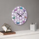 Niedliche Polka gepunktete und lila, rosa, blaue, orange und schmetterlingsblaue Uhr, die für das Kinderzimmer eines kleinen Jungen oder jedes Zimmer bezaubert.