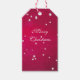 Ein Geschenkschild mit Schneeflocken, die vor einem hellen roten Hintergrund fallen, wird Ihre Weihnachtsfeiertage sicher aufheitern. Der Text ist leicht anpassbar.
