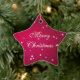 Mit diesem hübschen Ornament mit weißen Schneeflocken auf hellrotem Hintergrund und den Worten "Frohe Weihnachten" wird Ihr Weihnachtsbaum gemildert. Sie können die Nachricht auf der Vorder- oder Rückseite des Ornaments ganz nach Ihren Wünschen ändern.