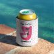 Diese Dose oder Flasche cooler hat eine hübsche Katze, eine schwarze eine weiße sitzt in einem rosa Stuhl Mitte des Jahrhunderts auf einem weißen Hintergrund mit rosa Polka Punkte. Passen Sie Ihren Text auf der Vorder- und Rückseite mit der Vorlage an.