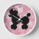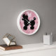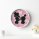 Weiße Poodle Wanduhr mit Retro-Gefühl. Ein rosa und weiße Retromuster-Hintergrund und eine Grafik von rosa Taste wie Scheiben, um 12, 3, 6 und 9 Uhr darzustellen. Ein hübsch flauschig aussehendes schwarzes Poodle mit Bogen schmückt die Mitte der Uhr. Anpassen, um jeden gewollt Text hinzuzufügen. Macht eine tolle Geschenkidee.