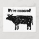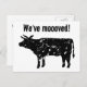 Hübsche bewegliche Postkarten mit Kuh-Silhouette. Benutzerdefinierter bewegter Text; Wir sind umgezogen! Fügen Sie Ihre neue Adresse auf der Rückseite ein. Moderne Umzugskarten für Zuhause-, Farm- oder Milchgeschäfte.