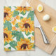 Küchenhandtuch mit niedlichem sommerlichen Muster. Hübsche gelbe Sonnenblumen, umgeben von grünen Blätter in einem sich wiederholenden Muster.