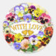 Hübsche, farbenfrohe Stiefmütterchen mit ihren freundlichen kleinen "Gesichtern" und zwei kleinen goldenen Herzen. Eine großartige Art, eine liebevolle Nachricht an jemanden zu senden, besonders, sicher zu schätzen. Dieses Design eignet sich nicht für alle verfügbaren Aufkleber-Optionen, und bei der Auswahl einer anderen Form müssen möglicherweise einige Designobjekte neu positioniert werden.