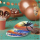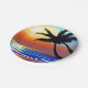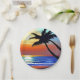 Geburtstagsparty-Teller. Vintage Farben Palmen Silhouette und Ozeanwellen auf einem Sandstrand ai generierte Kunstwerke.