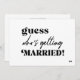 Einfache, schwarz-weiße trendige Typografie Hochzeitseinladung mit einer lustigen "raten Sie, wer heiratet" modernen Zitat-Skript.
