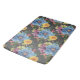 Die schöne Badematte hat große, blaue Primärblumen mit kleineren Blumen in Gelb, lila und Rosa, die alle auf einem karkohlegrauen Hintergrund gehalten sind, was ihr ein dunkles und elegantes Aussehen verleiht. Matches für Bett, Badewanne und im gesamten Zuhause