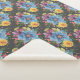 Hübsches Sherpa-Deckendesign mit großen lackierten Blüten in Primärblau und kleineren in Gelb, lila und Rosa, alles auf karkohlegrauem Hintergrund, was ihm ein dunkles und elegantes Aussehen verleiht.