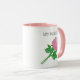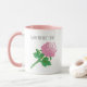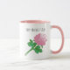 Eine große und schöne rosa Rose auf einer Tasse mit dem Text Alles Gute zum Muttertag.