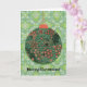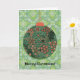 Auf dieser lustigen Retro-Weihnachtskarte, die aus einem Vintagen Blumenmuster besteht, wird mein originales digitales Kunstwerk präsentiert, das zu einem grafischen Weihnachtsschmuck mit einer Goldkette nachgebaut wurde und auf einem Vintagen, grünen Hintergrund platziert ist, der für ein festliches und nostalgisches Erscheinungsbild gestaltet ist. Die Vorderseite der Karte Staaten "Frohe Weihnachten!" und die Innenseite der Staaten "Mögen die Dekorationen der Saison Erinnerungen von fröhlichen Erinnerungen und bringen Glück für das neue Jahr!". Es gibt auch genügend Platz, um Ihre eigene Note hinzuzufügen. Diese hübsche und fröhliche Karte würde die Saison für jeden aufheitern, besonders für diejenigen, die Vintage und Retro-Designs genießen.