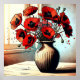 Vase der Blume. Rote Pfeffer in einer weißen Vase, die auf einem Tisch sitzen. Hübsches Comic Buch Stil Cartoon Poppies.