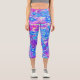 Hübsche Violett-Blau- und Limettengrüne Blume Capri Leggings