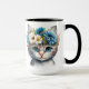 HÜBSCHE WASSERFARBE, WEISSE KATZE MIT BLUME TASSE