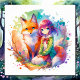 Hübsche Aquarellkunst für ein Jugendzimmer. Ein Fuchs mit einem animierten Mädchen in Rosa, Grün, Blau und Orange.