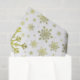 Hübsche Goldschneeflocken in gemischten Größen verstreut über dieses Weihnachtsmuster. Dieses niedliche festliche Design mit einem knalligen, winterweißen Hintergrund wird jedem Alter gefallen und ist perfekt für jeden, der weiche und zarte Weihnachtsmuster mag.