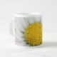 Hübsche, weiße Blume mit einer großen gelben Mitte und weich weißen Blütenblättern.